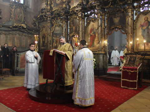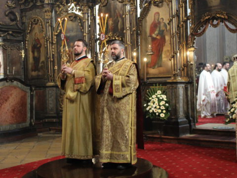 Наша света Црква у среду, 12. фебруара 2020. године, молитвено прославља празник Света Три Јерарха – Јована Златоуста, Григорија Богослова и Василија Великог. Престони празник Алмашког храма у Новом Саду прослављен је светом архијерејском Литургијом, коју је служио Његово Преосвештенство Епископ бачки г. Иринеј, уз саслужење Његовог Преосвештенства Епископа мохачког г. Исихија, свештенства и ђаконства Епархије бачке.