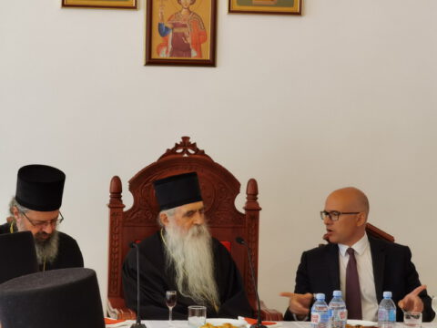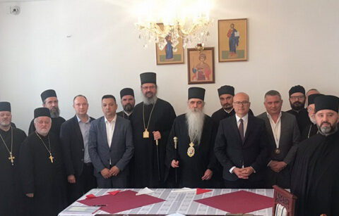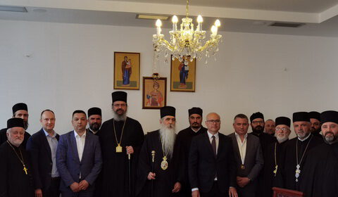 Његово Преосвештенство Епископ новосадски и бачки др Иринеј угостио је 26. маја 2020. године, у свечаној дворани Црквене општине новосадске, Градоначелника Новог Сада господина Милоша Вучевића са сарадницима.