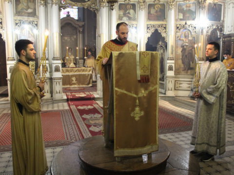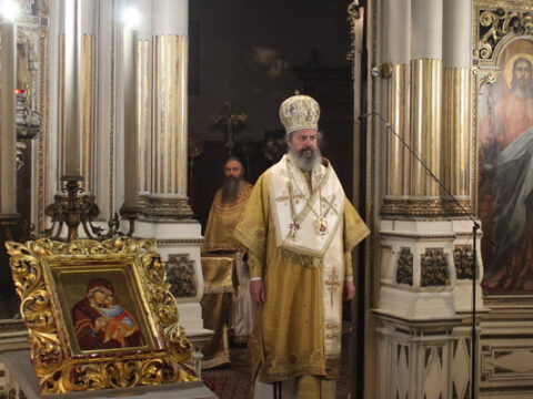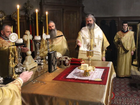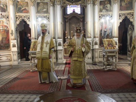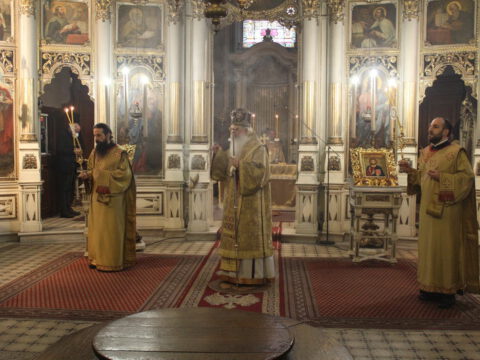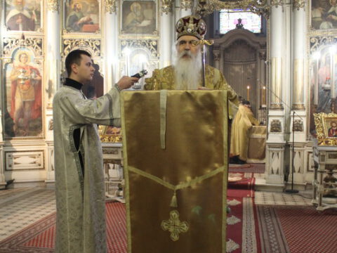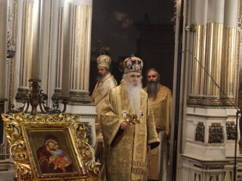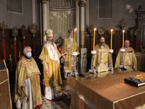 Његово Преосвештенство Епископ бачки г. Иринеј началствовао је у суботу, 6/19. децембра 2020. године – на празник Светога Николаја Мирликијског, на светој Литургији у Светогеоргијевском храму у Новом Саду, а саслуживали су Епископ мохачки г. Исихије, архимандрит Серафим (Балтић), сабрат манастира Нова Грачаница, свештенство Саборног храма и ђакони Епархије бачке.