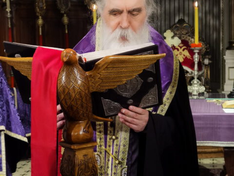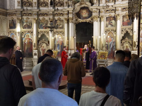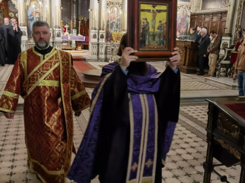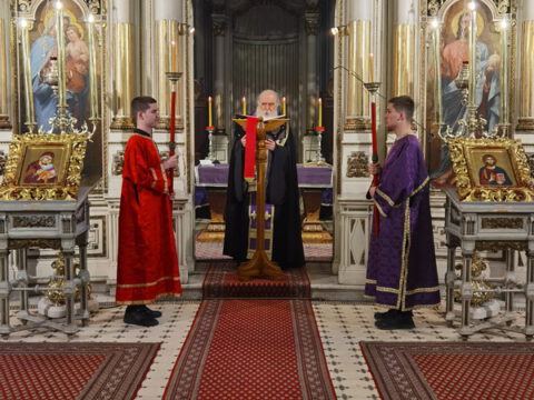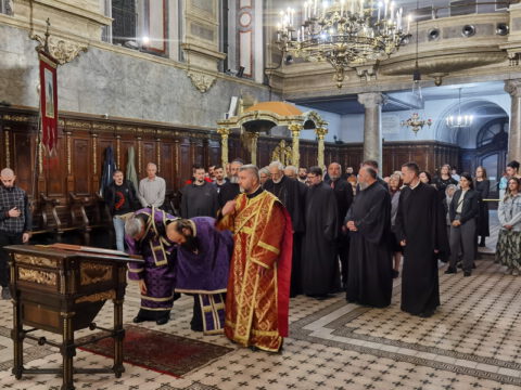 На Велики четвртак, 19. априла / 2. маја 2024. године, у Саборном храму Светог великомученика Георгија у Новом Саду служено је јутрење Великог петка, током којег је прочитано дванаест одељака из светог Јеванђеља о страдањима Господа Исуса Христа.