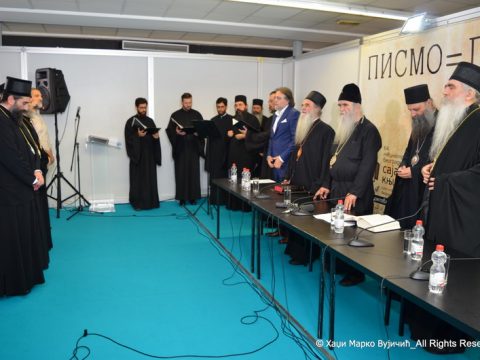 Свечаност у дворани Иво Андрић (Хала 1А) отворио је хор Црквене општине новосадске Свети Јован Дамаскин, а добродошлицу присутнима пожелео је др Зоран Недељковић, управник Библиотеке Српске Патријаршије.