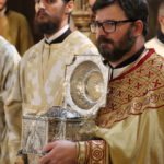 После заамвоне молитве служен је чин литије са светим иконама у Недељу Православља, после чега је Преосвећени владика Иринеј верном народу честитао празник.