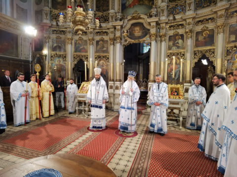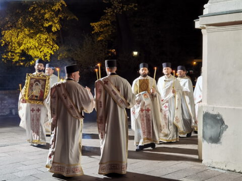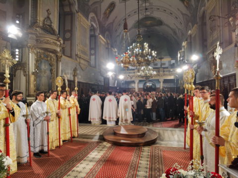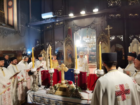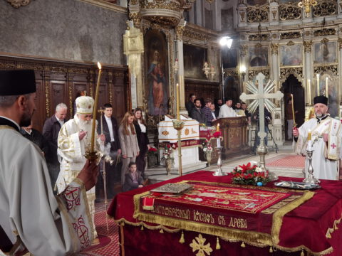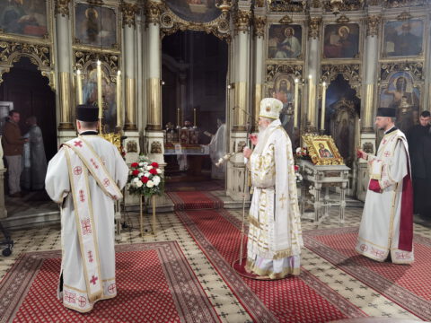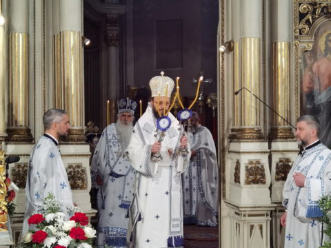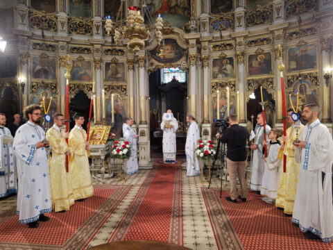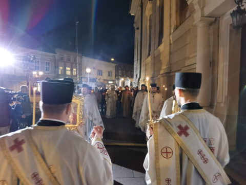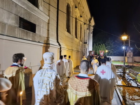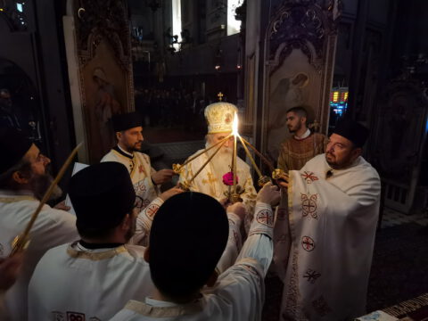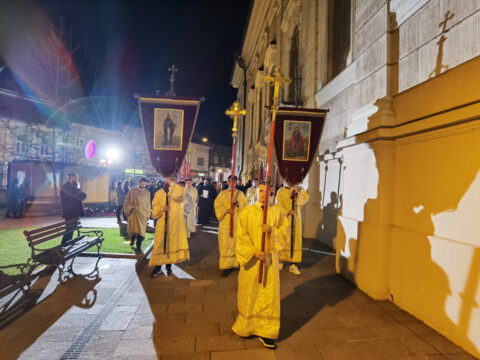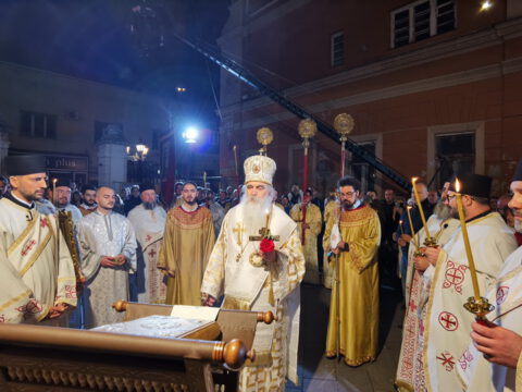 На Празник Васкрсења Господа Исуса Христа, у недељу, 3/16. априла 2023. године, Његово Преосвештенство Епископ бачки господин др Иринеј служио је пасхално јутрење и началствовао на светој архијерејској Литургији у Саборном храму у Новом Саду. Преосвећеном владици Иринеју су саслуживали Епископ мохачки господин Дамаскин и свештено братство Саборног храма. По прочитаном јеванђелском одељку на светој Литургији, протојереј Велимир Врућинић, настојатељ Саборног храма, прочитао је Васкршњу посланицу Српске Православне Цркве. Непосредно пре причешћа верног народа Епископ мохачки господин Дамаскин је прочитао Васкршње слово светог Јована Златоуста.