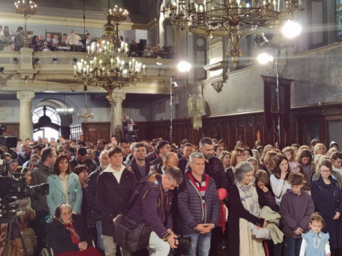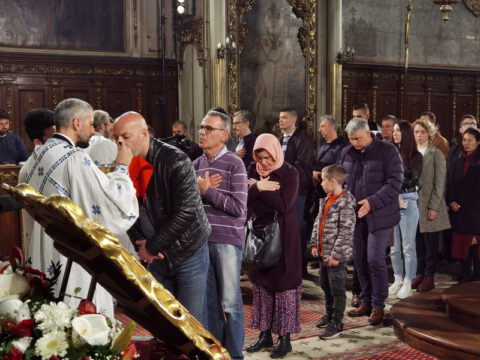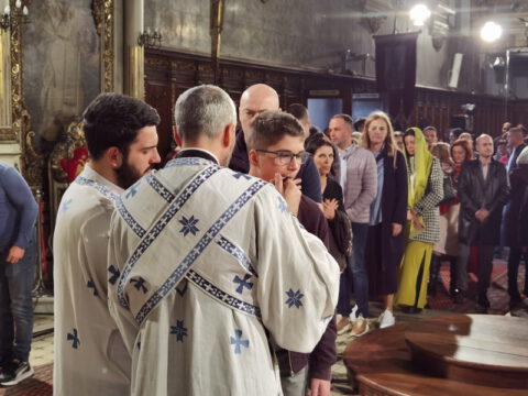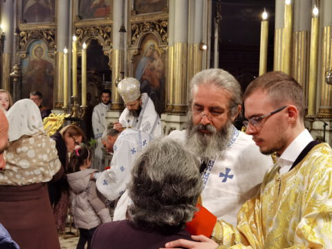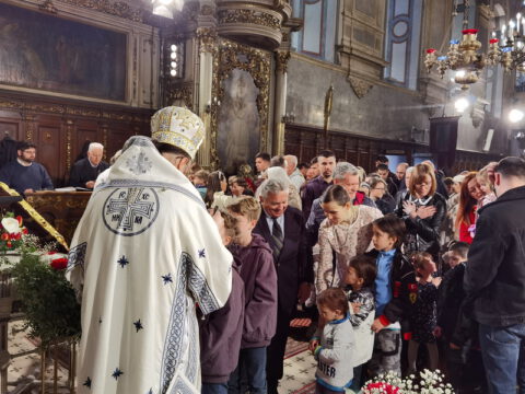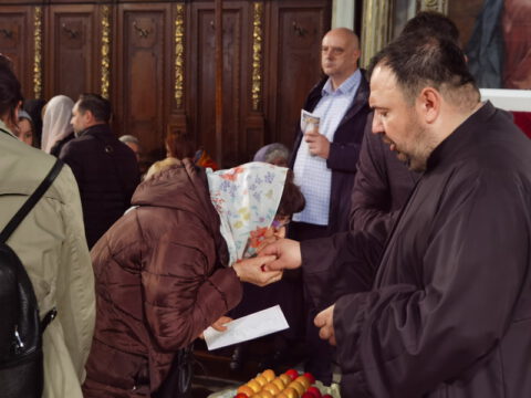 По завршетку свете Литургије, Преосвећени Епископ бачки Иринеј је многобројном верном народу честитао празник Васкрсења Христовог, пожелевши свима да у здрављу и добру прослављају Празник над празницима на многа и блага лета.