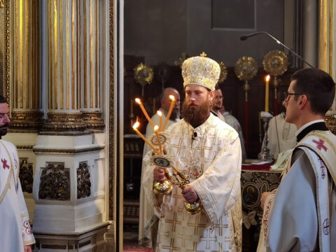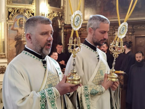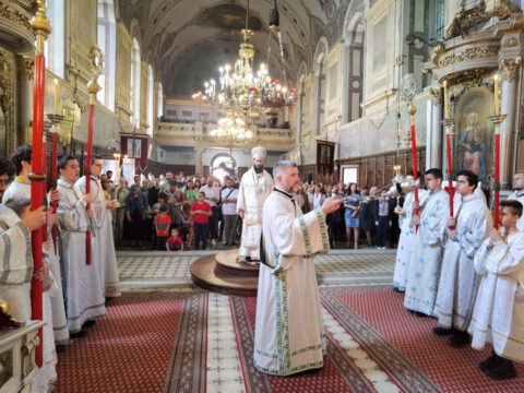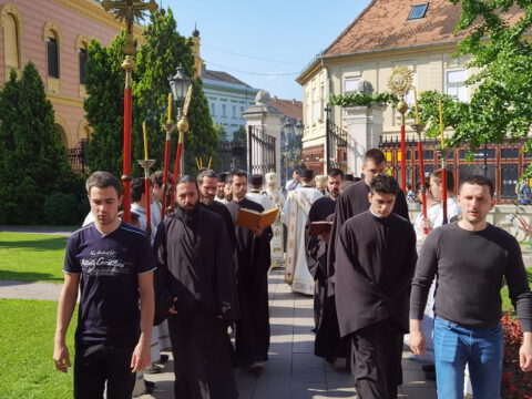 У недељу свете Педесетнице, 22. маја / 4. јуна 2023. године, Његово Преосвештенство Епископ бачки госпoдин др Иринеј началствовао је на светој архијерејској Литургији у Саборном храму у Новом Саду. Преосвећеном Епископу бачком Иринеју саслуживали су Епископ топлички господин Петар, викар Патријарха српског, свештенство Саборног храма и новосадски ђакони.