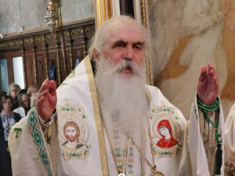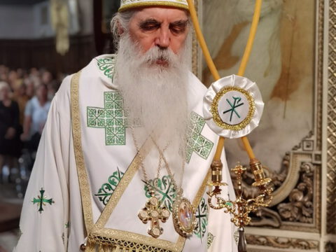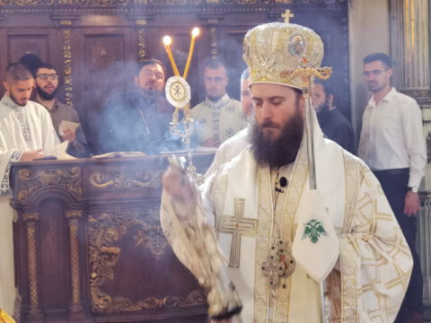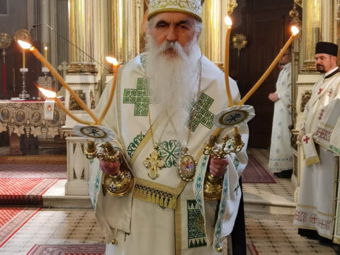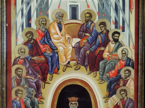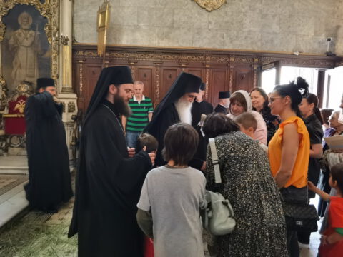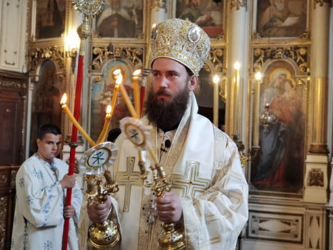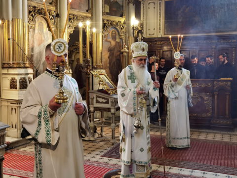 У архипастирској беседи после прочитаног јеванђелског зачала, Преосвећени владика Иринеј је објаснио различита имена великог празника Педесетнице, а потом је указао на улогу Духа Светога у Цркви, рекавши, између осталог: „У Новом Завету Господ Својом премудрошћу, Својом љубављу и Промислом – кад Он раздељује дарове Духа Светога у виду огњених језика – све поново позива у јединство и васпоставља изгубљено јединство људскога рода, људске природе и свакога појединачног људског бића. И не само што васпоставља негдашње јединство него дарује много дубље, присније јединство, јер се људска природа са божанском сједињује у једној јединственој, нераздељивој Личности Богочовека Исуса Христа. То је духовни смисао и суштина празника. Зато се он назива Силаском Духа Светога, даном Духа Светога, али и врло често празником Свете Тројице, јер се на тај начин, најпре кроз вољу Бога Оца која се исказивала одмах после људског пада у грех, па кроз јављање Сина Божјега, Господа Христа у историји, у свету и, ево, најзад Силаском Духа Светога, открива се људима – колико људи могу да прихвате и схвате – Тајна Божја као Тајна Свете Тројице. Сваки црквени празник, а поготову велики Господњи празници, међу њима и данашњи празник, уствари је – поред литургијског сећања и доживљаја, актуализације некадашњих догађаја спасења – у исто време програм и задатак за наш живот. Свети Серафим Саровски је говорио – сажимајући мудрост Цркве у ту своју реченицу – да је циљ нашега живота на земљи уствари задобијање Духа Светога, задобијање Његових благодатних дарова. Ти огњени језици, тајанствени, које су видели апостоли на данашњи дан и први хришћани јесу символ благодатних дарова. Једна благодат Божја, Његова нетварна божанска сила раздељује се у много дарова, а увек остаје једна, што је, наравно, нашем природном умовању немогуће, али је то реалност Царства Божјег које нам се већ овде и сада у Цркви открива, а откриће се у потпуности о Другом доласку Христовом. Дакле, задобити Духа Светога, живети тако, веровати тако, волети тако, смиравати се, бити трпељив и стрпљив, све друге јеванђелске врлине – све су оне наша припрема и наша чежња да будемо уједињени у Духу Светоме. Дух Свети Својом благодаћу је Творац јединства Цркве и Творац било којег јединства у људском роду и искуствуˮ, нагласио је Преосвећени владика Иринеј.