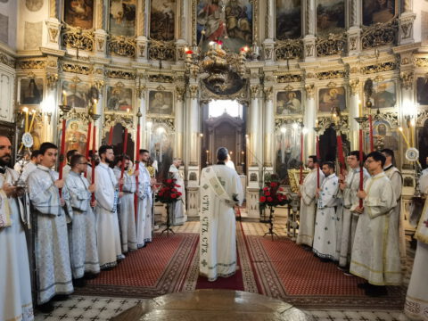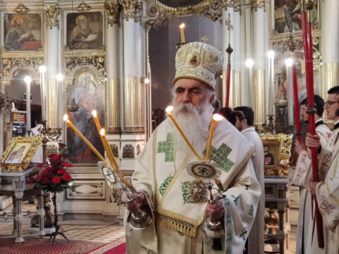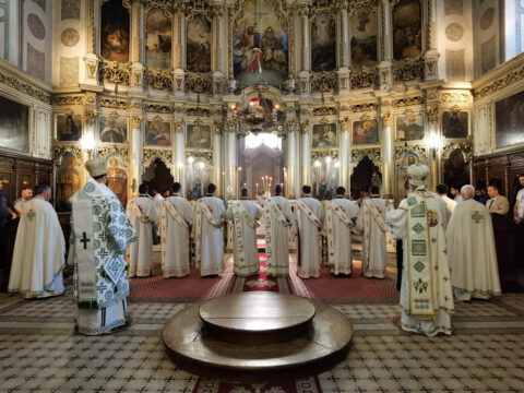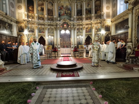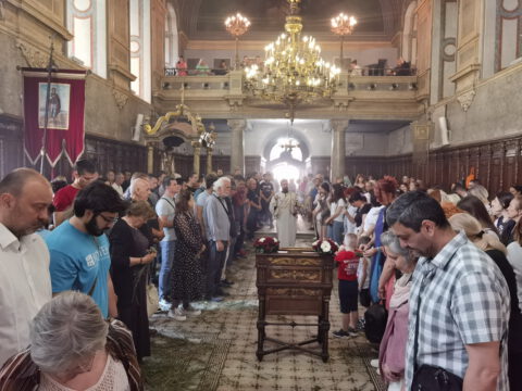 У недељу свете Педесетнице, 30. маја / 12. јуна 2022. године, Његово Преосвештенство Епископ бачки госпoдин др Иринеј началствовао је на светој архијерејској Литургији у Саборном храму у Новом Саду, а саслуживали су Епископ мохачки господин Дамаскин, братство Саборног храма и новосадски ђакони.