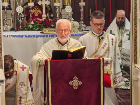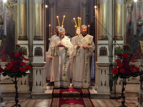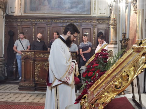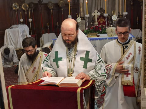 После отпуста свете Литургије, Епископ мохачки Дамаскин је служио празнично вечерње свете Педесетнице, на којем су прочитане коленопреклоне молитве.