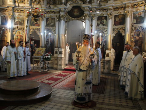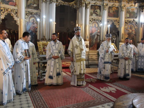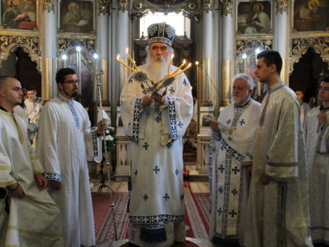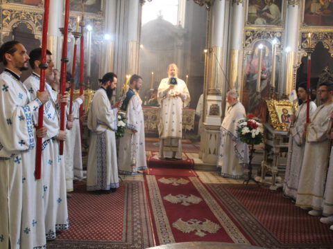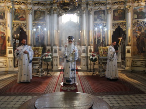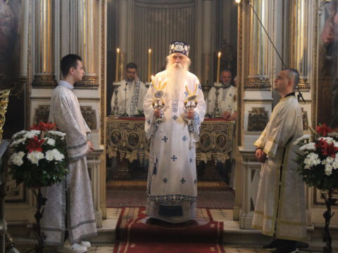 Његово Преосвештенство Епископ бачки др Иринеј началствовао је на светој архијерејској Литургији на празник Преображења Господњег, у среду, 6/19. августа 2020. године, у Саборном храму у Новом Саду. Преосвештеном владици Иринеју су саслуживали: Епископ мохачки г. Исихије, свештеници Саборног храма и новосадски ђакони.