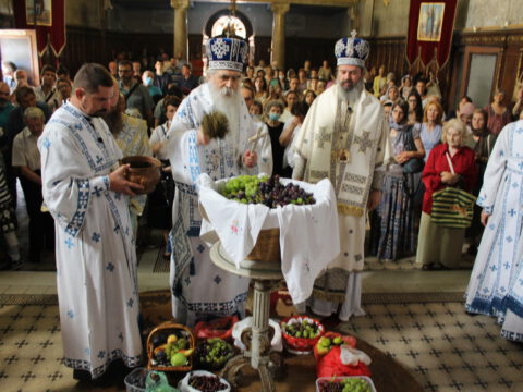 После заамвоне молитве, епископи Иринеј и Исихије су – према устаљеном и благословеном поретку – освештали нови род винове лозе.