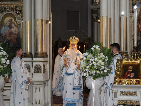 Његово Преосвештенство Епископ бачки г. Иринеј служио је свету архијерејску Литургију у понедељак, 8/21. септембра 2020. године, на празник Рођења Пресвете Богородице, у Светогеоргијевском храму у Новом Саду. Владици су саслуживали Његово Проесвештенство Епископ мохачки г. Исихије, јерођакон Јустин (Живанић), свештеници Саборног храма и новосадски ђакони.