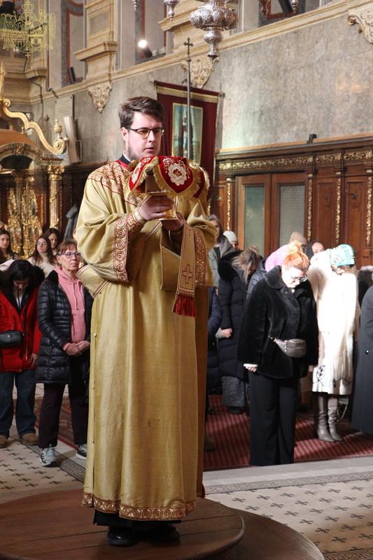 Пре почетка свете Литургије, Високопреосвећени Митрополит бачки г. Иринеј је рукопроизвео чтеца Василија Драговића у чин ипођакона. После прочитаног јеванђелског одељка, Високопреосвећени владика г. Давид је беседио о светом Јовану Крститељу, те је, између осталог, рекао: „Он који је највећи рођени од жене, који је заједно са Господом родоначелник пустињског, отшелничког живота, изговара речи које имају саборни карактер и тичу се спасења свих људи. После толиких подвига равноангелнога живљења, чињенице да је анђелима храњен и васпитаван, да је благодаћу Божјом крепљен од почетка и да је сасвим тачно понео најпохвалније име и особину да је највећи рођени од жене, да је небески човек и земаљски анђео, свети Јован сав свој надчовечански подвиг своди на проповед о саборности и заједничком животу, односно на реч о спасењу свих људи. Он на Јордану људе водом крштава за покајање, припрема их за крштење огњем, благодаћу Божјом и водом, за крштење Онога чије Тело ће бити велико као целокупна васељена и, наравно, неизмериво више од тогаˮ, рекао је Митрополит крушевачки г. Давид.