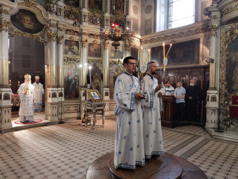 На празник светих апостола Петра и Павла – Петровдан, у уторак, 29. јуна / 12. јула 2022. године, на светој архијерејској Литургији у Саборном храму у Новом Саду началствовао је Његово Преосвештенство Епископ бачки господин др Иринеј. Епископу бачком саслуживали су Његово Преосвештенство Епископ мохачки господин Дамаскин, свештенство и ђаконство Епархије бачке.