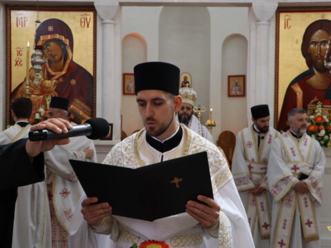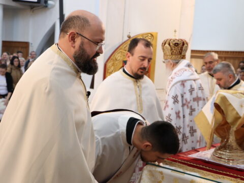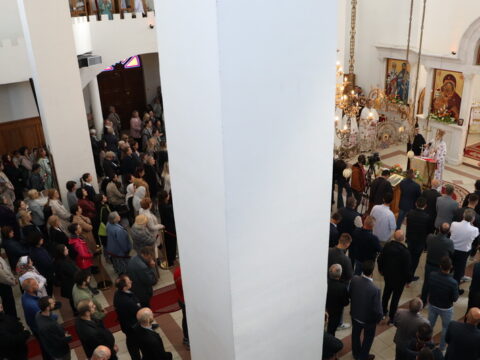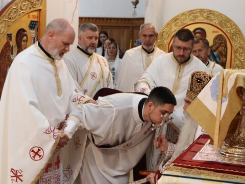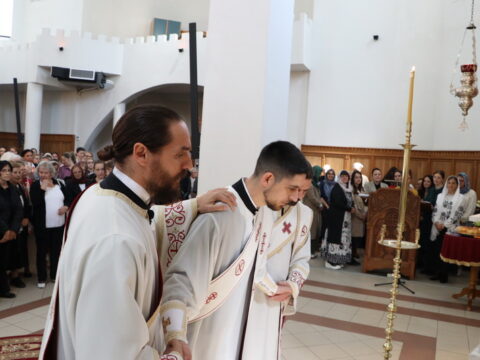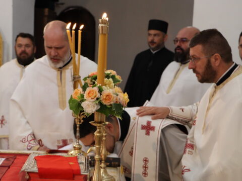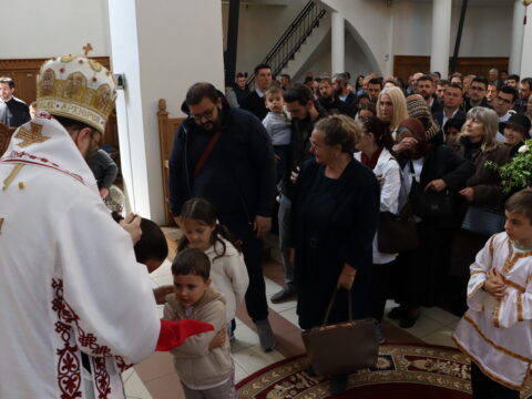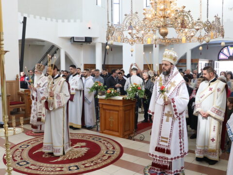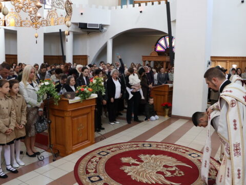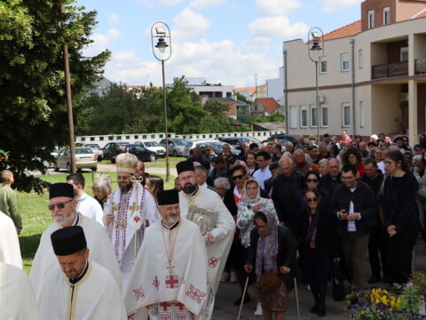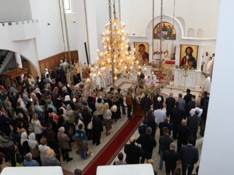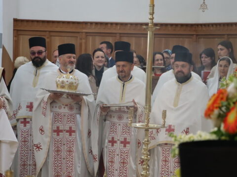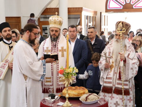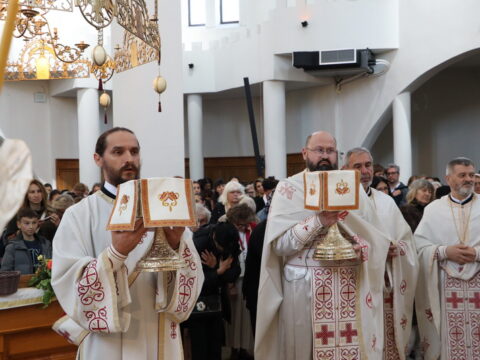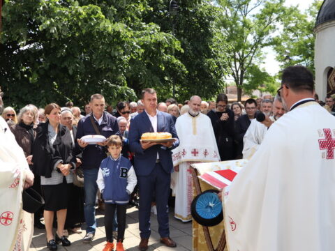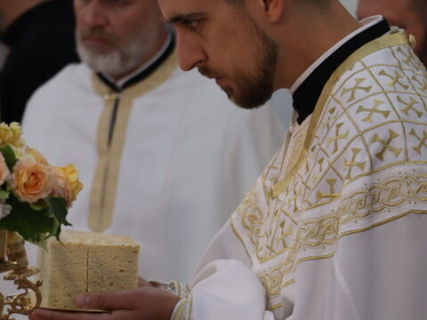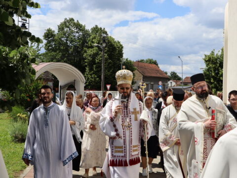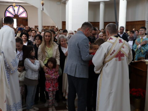 У току свете Литургије, Високопреосвећени Митрополит бачки Иринеј је у чин презвитера рукоположио ђакона Огњена Звекића из Суботице. После заамвоне молитве извршен је трократни опход око светог храма, а потом и чин благосиљања славских дарова, које су припремили овогодишњи кумови, Милан и Јелена Вудраговић. Кумство за наредну годину преузели су Горан и Наталија Рвовић. После богослужења, Митрополит бачки Иринеј је свештенству и сабраном верном народу још једном честитао храмовну славу. Протојереј Александар Игњатов је заблагодарио митрополиту Иринеју и епископу Дамаскину на љубави и части указаној служењем свете Литургије на дан престоног празника храма.