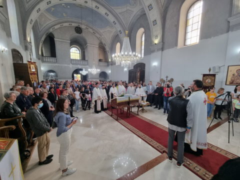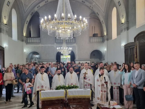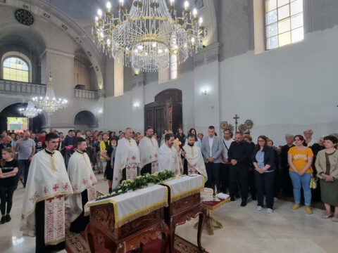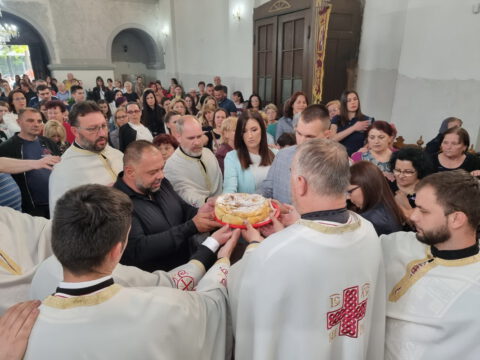 Епископ Дамаскин је такође честитао јубилеј верном народу у Кули и свима који се труде око обнове храма, те је похвалио хор храма. После свете Литургије, приређена је трпеза љубави.