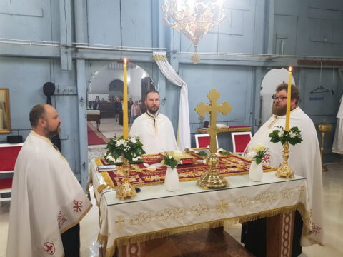 После заамвоне молитве, извршен је трократни опход око светог храма. Светој Литургији присуствовали су и представници Општине Кула.