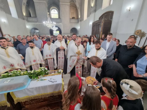 На дан празника, на светој архијерејској Литургији началствовао је Његово Преосвештенство Епископ бачки господин др Иринеј, уз саслужење Његовог Преосвештенства Епископа мохачког господина Дамаскина, свештенства и ђаконства Епархије бачке.