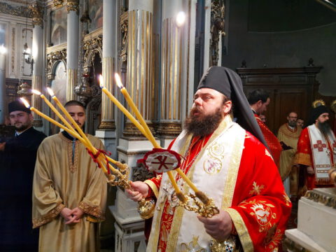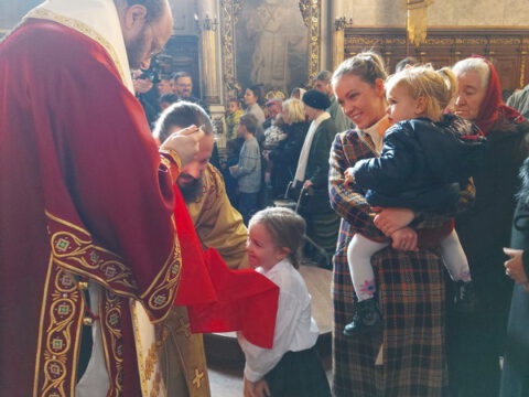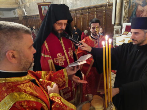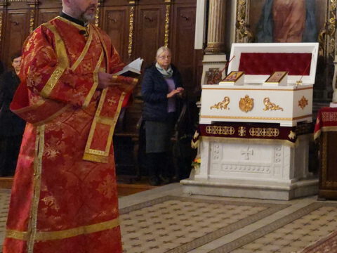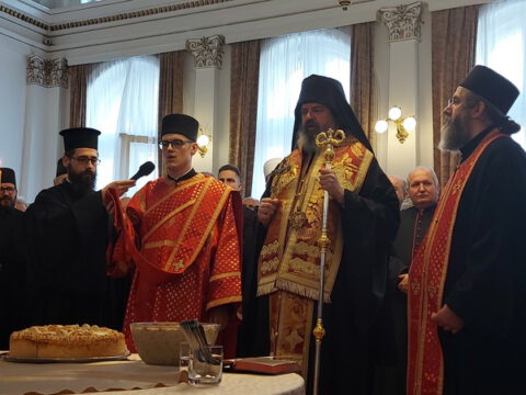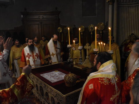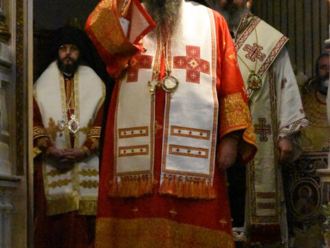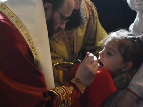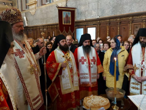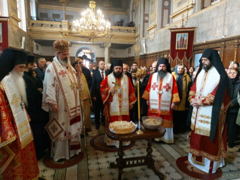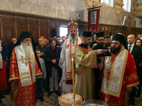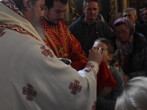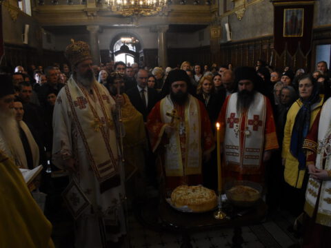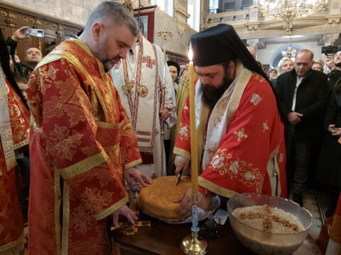 После заамвоне молитве, Епископ осечкопољски и барањски г. Херувим је благословио славске дарове принете у славу Божју, а у част светог великомученика Георгија.