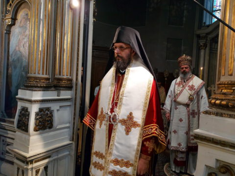 На светој архијерејској Литургији началствовао је Његово Преосвештенство Епископ ваљевски господин Исихије, уз саслужење Преосвећене господе епископа бачког Иринеја, осечкопољског и барањског Херувима, шабачког Јеротеја и мохачког Дамаскина, свештенства Епархије бачке и ђаконâ из више епархија Српске Православне Цркве.