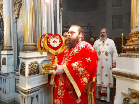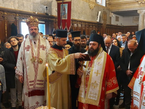 По отпусту свете Литургије, Епископ бачки г. Иринеј заблагодарио је, у име свих присутних и у своје лично име, Епископу ваљевском г. Исихију на служењу свете Литургије и Преосвећеној господи архијерејима који су саслуживали, као и свештенству и благоверном народу на молитвеном учешћу у прослави славе Града Новог Сада. Преосвећени владика Иринеј је честитао славу Граду Новом Саду и свима који прослављају данашњи празник као своје крсно име.