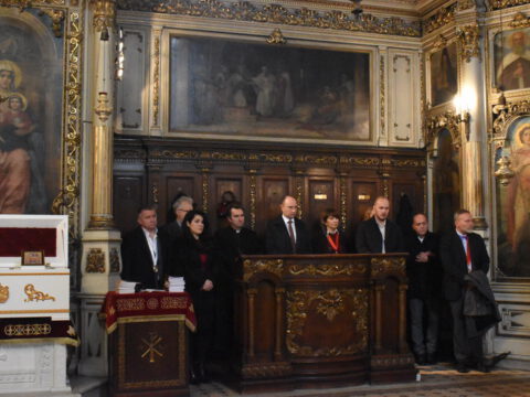 Светој Литургији у Саборном храму су присуствовали: г. Милан Ђурић, градоначелник Новог Сада, госпођа Јелена Маринковић Радомировић, председник Скупштине Града Новог Сада, г. Никола Бањац, генерални секретар Скупштине Аутономне Покрајине Војводине, г. Јарослав Јаворник, бискуп Словачке Евангеличке Цркве а. в. у Србији, г. Мирослав Илић, помоћник покрајинског секретара за културу, јавно информисање и односе са верским заједницама, професор др Драган Станић, председник Матице српске, др Радивоје Стојковић, директор Гимназије „Јован Јовановић Змајˮ, др Весна Туркулов, председник Управног одбора Универзитетског клиничког центра Војводине, г. Петар Ђурђев, директор Историјског архива Града Новог Сада, г. Никола Перваз, председник Црквене општине новосадске и многи други представници друштвеног и културног живота Новог Сада.