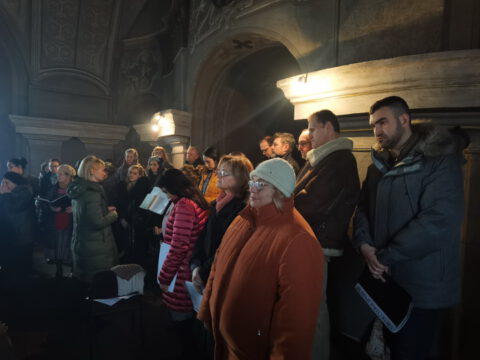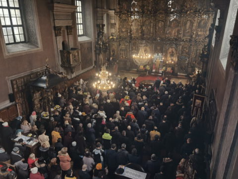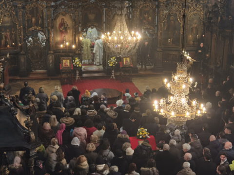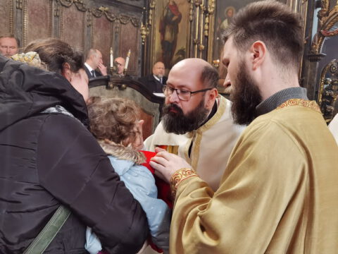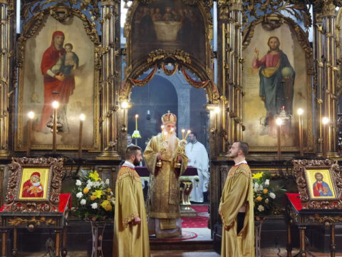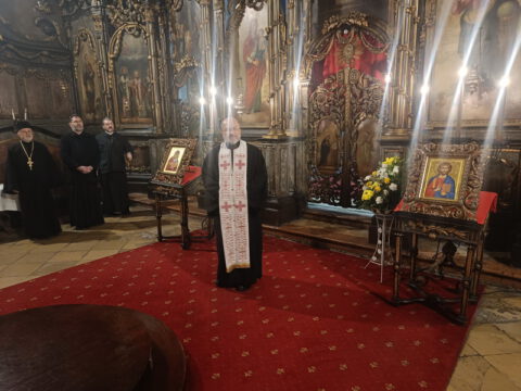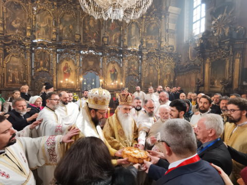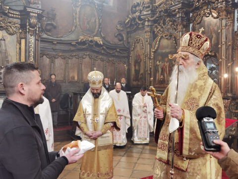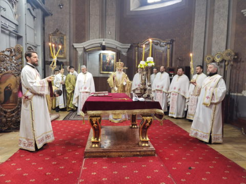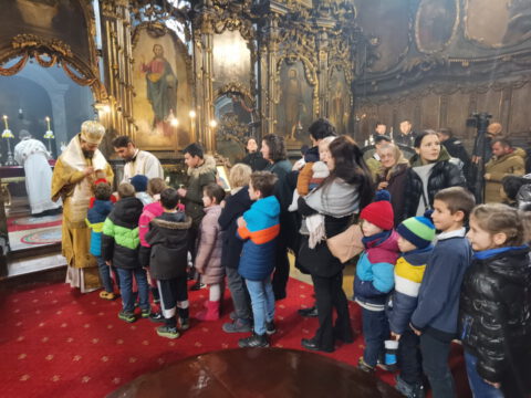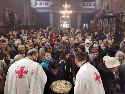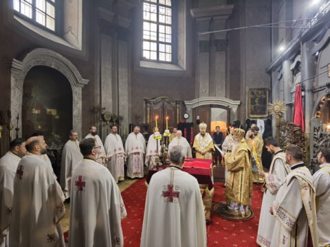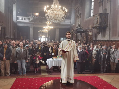 На светој Литургији је појао црквени хор „Свети Стефан Дечанскиˮ којим диригује Светлана Грујић. Светој Литургији су присуствовали: г. Милан Ђурић, градоначелник Новог Сада, г. Далибор Рожић, члан Градског већа за културу, професор др Весна Туркулов, председник Управног одбора Универзитетског клиничког центра Војводине, др Радивоје Стојковић, директор новосадске Гимназије „Јован Јовановић Змајˮ, г. Синиша Јокић, директор Завода за заштиту споменикâ културе Града Новог Сада, г. Никола Перваз, председник Црквене општине новосадске, и многобројни верни народ. Кумство за наредну годину прихватио је г. Далибор Манић.