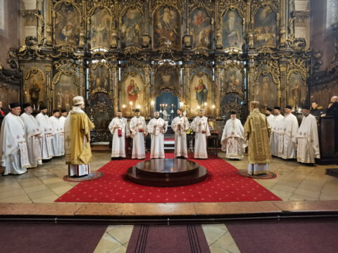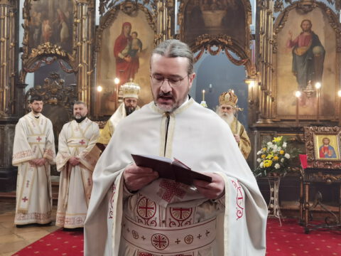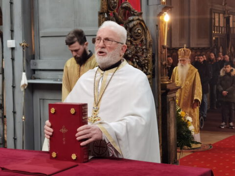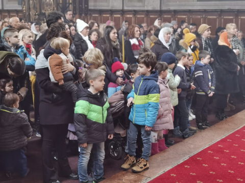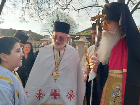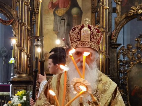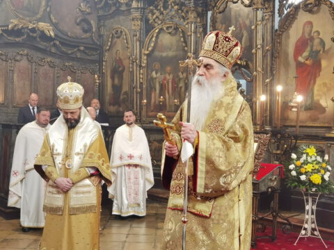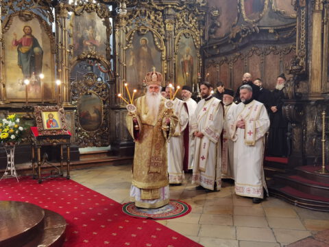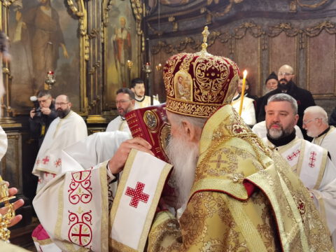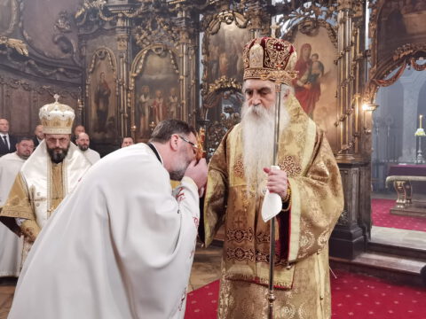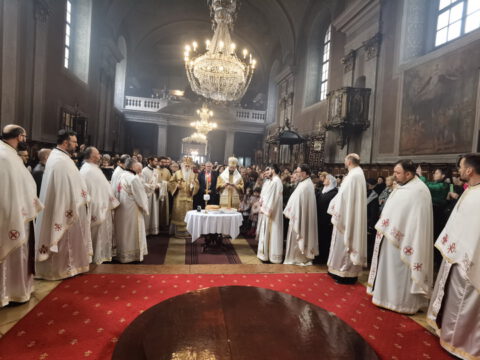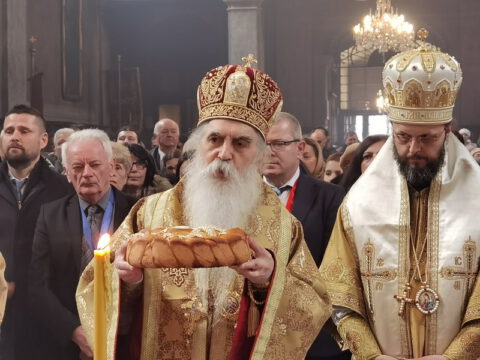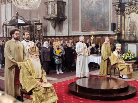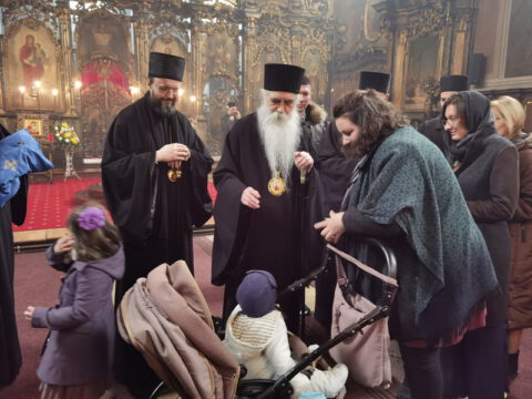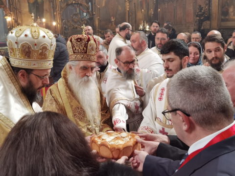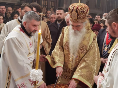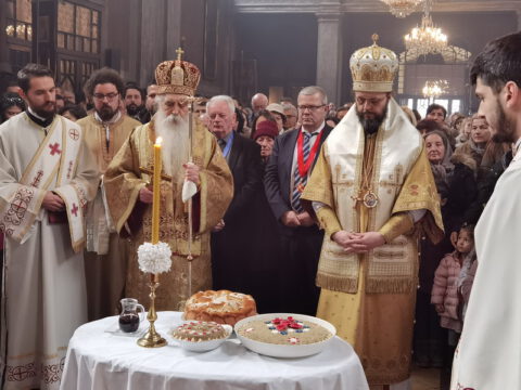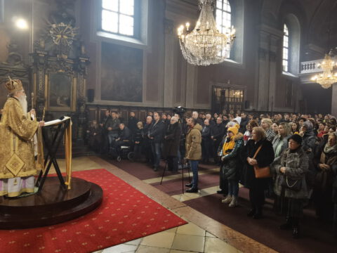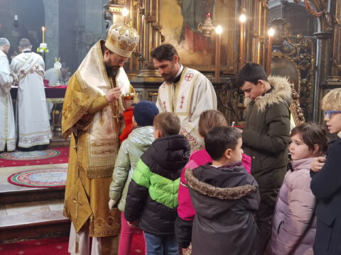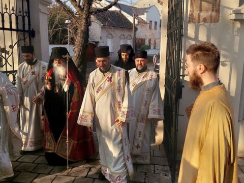 Беседећи по прочитаним јеванђелским одељцима, Преосвећени владика Иринеј је поучио верни народ о покајању као промени начина мишљења, у светлу припреме за Часни пост и јеванђелске приче о блудном сину, као и о значају тројице светитеља које Црква данас прославља, те је, између осталог, рекао: „Пример истинске теологије, истинске духовности, истинске просвете и духовне културе су и данас празнована тројица великих светитеља – свети Василије Велики, свети Григорије Богослов и свети Јован Златоуст. Овај празник је настао доста касно, негде у 11. веку, јер је избила препирка међу хришћанима ко је већи светитељ међу овом тројицом, што је само по себи бесмислено – сви су велики и није наше да меримо њихову величину. Зато су у једном откривењу од Бога сазнали, преко свог надлежног епископа, да не треба да деле светитеље ни по чему, ни по величини, ни по утицају, ни по било чему; да су сви велики. Тада је, у име те истине, установљен заједнички празник све тројице. Зато се празник и зове Света Три Јерарха. Они се у Црквама грчког језика прослављају као покровитељи истинске просвете, јер су били велики теолози, образовани људи, али, у исто време – без чега нема истинске просвете – били су прави подвижници и светитељи, угодници Божји, људи пуни врлине, смирења, доброте, љубави. Код нас је покровитељ наше просвете Свети Сава, са истом логиком, са истим образложењем. И он је био наставник пута који води у живот, управо зато што није само споља доприносио неком пролазном људском добру.ˮ