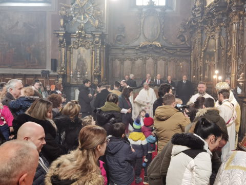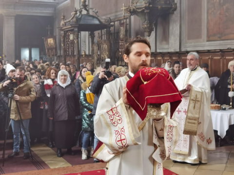 На дан храмовне славе Алмашког храма, на светој Литургији началствовао је Његово Преосвештенство Епископ бачки господин др Иринеј, уз саслужење Његовог Преосвештенства Епископа мохачког господина Дамаскина, свештенства и ђаконства Епархије бачке.