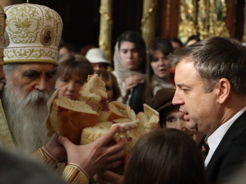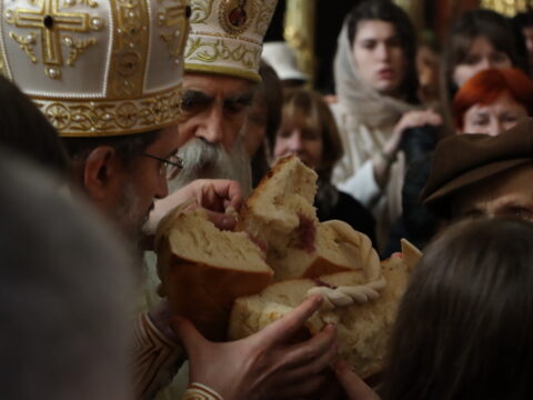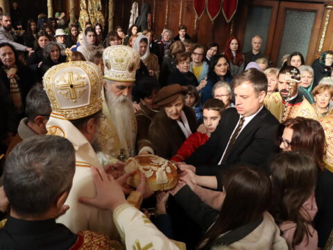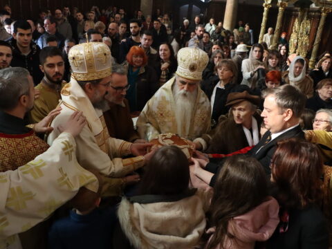 После заамвоне молитве извршен је чин благосиљања славских дарова, принетих у славу Божју, а у част Светог Саве. По отпусту свете Литургије, Високопреосвећени митрополит Иринеј је честитао празник сабраном верном народу, захвалио епископу Тихону на саслуживању, те је, између осталог, рекао: „Свима честитам данашњи велики празник, празник највећег, најомиљенијег светог из нашега рода, светитеља Саве, просветитеља српскога, који је и празник све наше деце и омладине, заштитник свих оних који и уче и уче се, тојест и оних који поучавају млађе, и младих, и деце који бивају поучавани. И то није само стицање спољашњих знања, како се данас мисли најчешће, него је то пре свега формирање образа Божјег, лика Божјега у душама деце и омладине. То није само школска слава, слава оних који уче и који се уче. Свети Сава је и свеопшта слава читавог нашег народа.ˮ