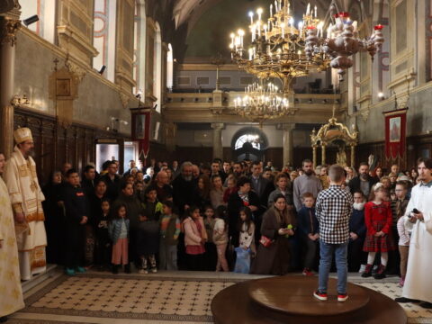 На крају свете Литургије, деца и ученици су приредили рецитал у част Светога Саве, небеског покровитеља свих ђака, учитеља и наставника. Светој Литургији у Саборном храму присуствовали су ученици основних и средњих школа. Од Гимназије „Јован Јовановић Змајˮ до Саборног храма, барјак са грбом Гимназије и орден Светога Саве првог реда традиционално су носили су ученици Гимназије Дарко Поповић и Петар Димитрић.