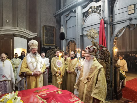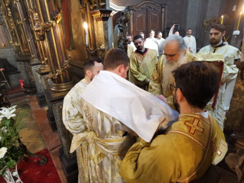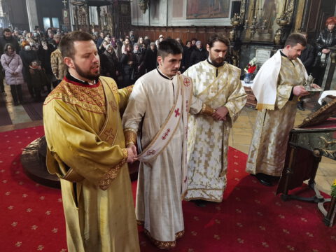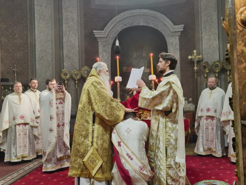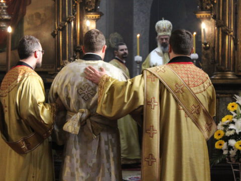 Пред почетак свете Литургије, Преосвећени владика Исихије је у чин ипођакона рукопроизвео др Владимира Антића, доцента Православног богословског факултета Универзитета у Београду, и вероучитеље Ђуру Родића из Бачке Паланке и Дарка Вујкова из Бечеја.