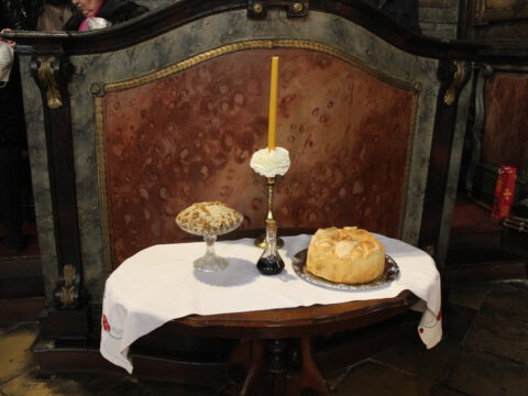 После заамвоне молитве, освештани су славски дарови који су припремљени од стране овогодишњих кумова – Месне заједнице Салајка. Заблагодаривши Епископу бачком који је узнео молитву за спас душа и свег рода људскога, протопрезвитер Бране Миловац, настојатељ Алмашког храма, пожелео је владици Иринеју да му Господ подари здравља, снаге и моћи да истраје у временима која су пред њим. Молитвено сабрање увеличало је појање хора Школе црквеног појања „Свети Јован Дамаскин”.