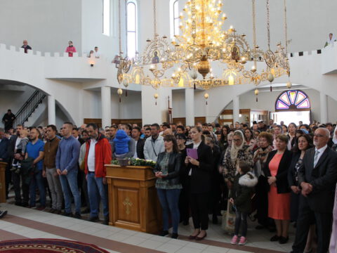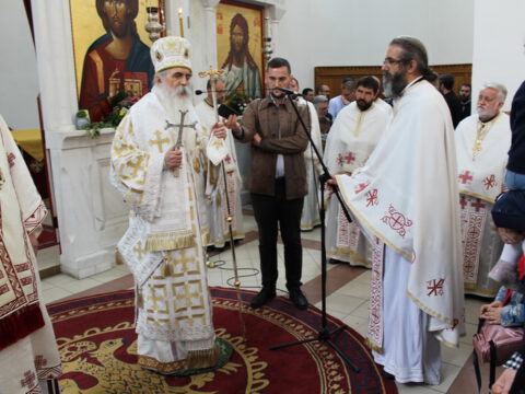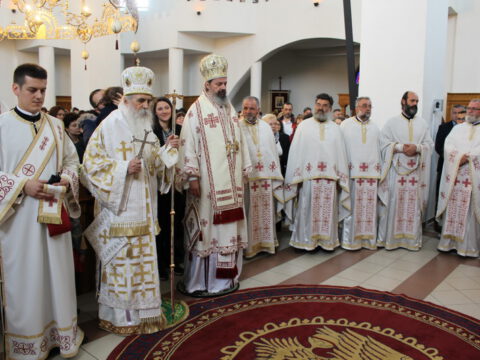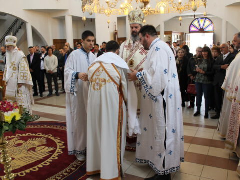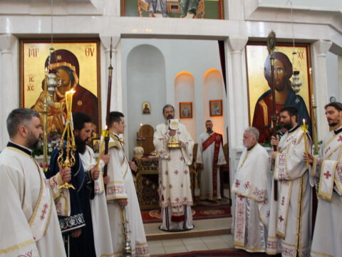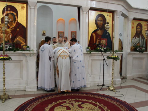 Епископ мохачки г. Исихије је рукоположио ипођакона Јована Вачика у чин ђакона. После благосиљања славког колача и кољива, у име свештенослужитељâ и вернога народа храма на Телепу, протонамесник Велимир Врућинић је заблагодарио владици Иринеју на началствовању евхаристијским сабрањем. Као што сте данас то учинили у храму који је изграђен и који служи Вашим благословом, тако већ 30 година – као Архијереј Цркве Божје – сведочите Јеванђеље Христово. Ви Владико, чврсто и непроменљиво проповедате и живите једну веру и Једнога Господа нашег Исуса Христа. Са жељом да још дуго година служите и сведочите, приносим Вашој љубави дар – икону великог архијереја, која је насликана у нашој парохији. Владико, на многаја љета, навео је настојатељ храма на Телепу. Епископ бачки је честитао славу братству и парохијанима храма. Нека Бог дâ да у здрављу и сваком добру прослављамо и идуће године, без страха од било каквих вируса осим вируса злобе, демонске и људске, и да се трудимо и сами да из нас никада не извире неко осећање небратољубиво и небогољубиво, казао је владика Иринеј.