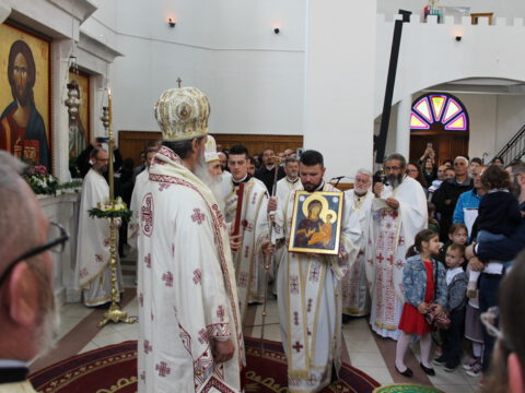 У знак захвалности владици Исихију, који је по први пут као архијереј служио у храму Светих Ћирила и Методија у Новом Саду, парохија телепска даривала је Његовом Преосвештенству икону Мајке Божје.