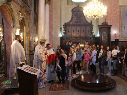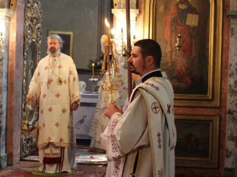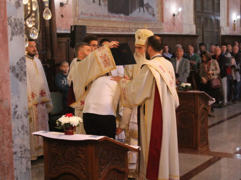 Пред почетак свете Литургије Преосвећени владика Иринеј рукопроизвео је вероучитеља Јована Вачика у чин ипођакона.