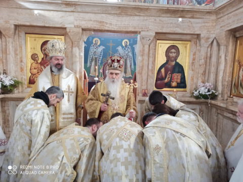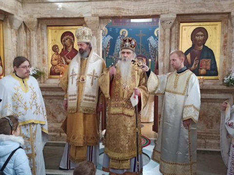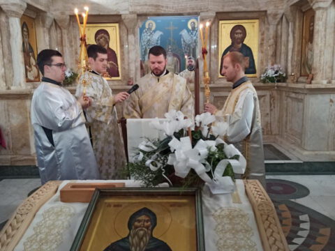 У славу Божју, а у част преподобнога Симеона Мироточивог, једним устима и једним срцем умилни славопој Господу узнео је хор ученика Богословије из Сремских Карловаца, сведочећи и актуализујући речи црквеног песника да „мислимо као да на небу стојимоˮ.