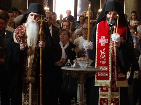 После отпуста свете Литургије, Високопреосвећени владика Иринеј се обратио присутнима и, између осталог, рекао: „Драга браћо и сестре, као и свих претходних година, и ове године на данашњи дан, који наш народ зове Задушнице, тојест дан молитве за душе упокојених, принели смо и ми молитве за све од памтивека упокојене. Уз сва та имена поменути су и наша браћа и сестре пострадали пре годину дана на данашњи дан у нашем граду. Наравно, ми их помињемо непрекидно, свакога дана на богослужењу, а на светој Литургији посебно током ове прве године од њиховог страдања и упокојења. Биће помињани и убудуће на проскомидији, на самом почетку свете Литургије, и у току Литургије. У сваком случају, молитва је неопходна, а исто тако нада на Господа и наше је чврсто уверење – управо на основу наше вере, на основу Јеванђеља – да они који невино страдају нису помрли, нису отишли ни у какво ништавило, него да их је Господ примио у Своје вечно наручје, у Своју вечну и неразориву заједницу љубави са свима спасенима и светима. Нека њима Господ дарује Царство небеско, а вама свима и свим људима, свему роду људскоме, сваки благослов и свако вечно добро!ˮ