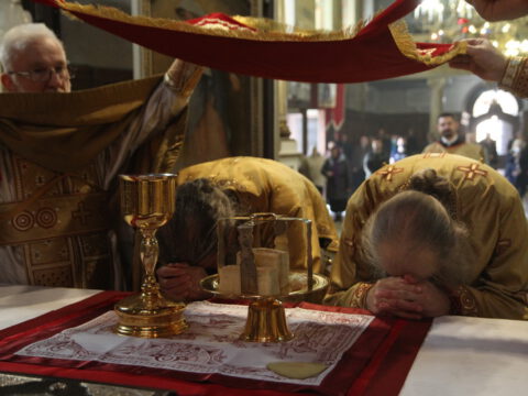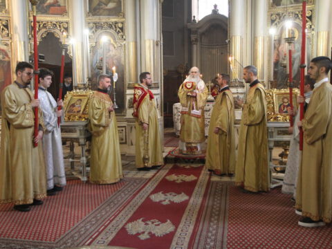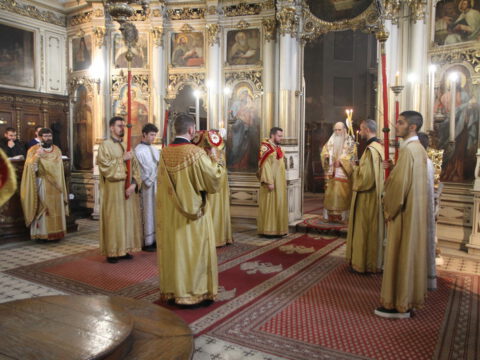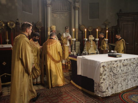 Његово Преосвештенство Епископ новосадски и бачки господин Иринеј служио је свету архијерејску Литургију на Велики четвртак, 16/29. априла 2021. године, у Светогеоргијевском храму у Новом Саду. Преосвећеном владици Иринеју су саслуживали: Његово Преосвештенство Епископ мохачки господин Исихије, свештеници Саборног храма и новосадски ђакони.