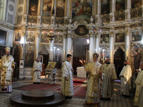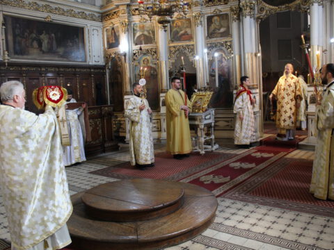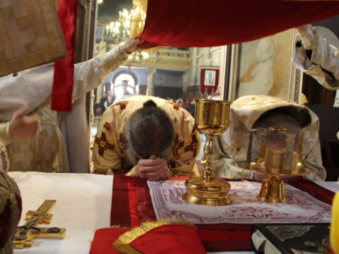 Његово Преосвештенство Епископ новосадски и бачки г. Иринеј служио је свету архијерејску Литургију на Велики четвртак, 16. априла 2020. године, у Светогеоргијевском храму у Новом Саду. Владици Иринеју су саслуживали: Његово Преосвештенство Епископ мохачки г. Исихије, свештеници Саборног храма и новосадски ђакони.