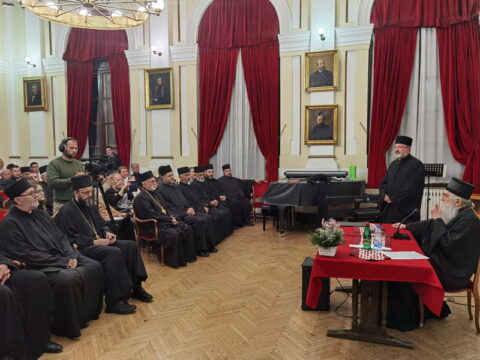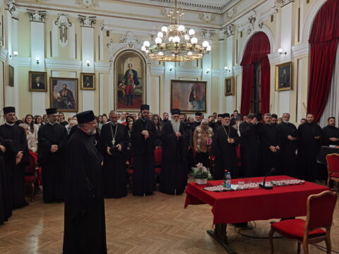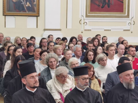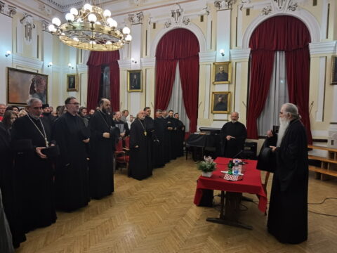 Пре почетка предавања присутнима се обратио протојереј Жељко Латиновић, настојатељ Успенског храма у Новом Саду, који је, у име организаторâ, заблагодарио Високопреосвећеном Митрополиту бачком др Иринеју што се одазвао позиву да узме учешћа у новом циклусу предавањâ Школе православне духовности.