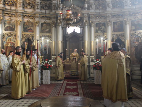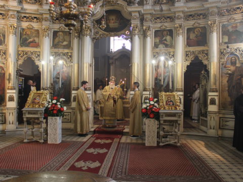По завршетку свете Литургије, владика Иринеј је честитао празник верноме народу Цркве Божје у Бачкој.