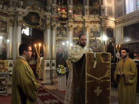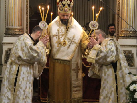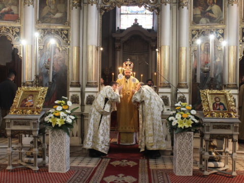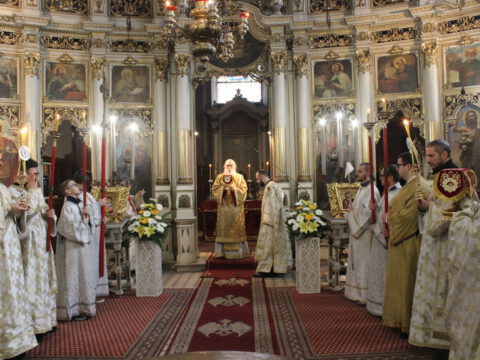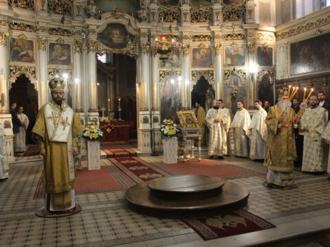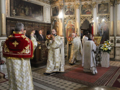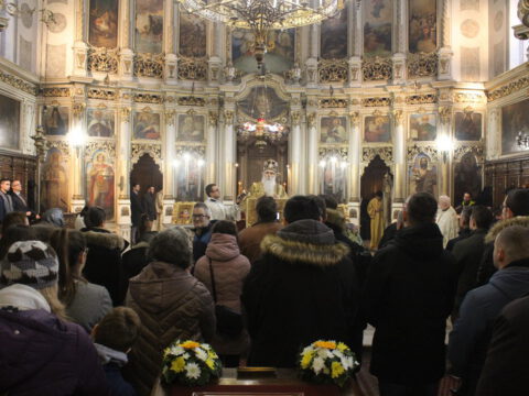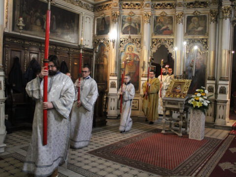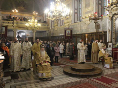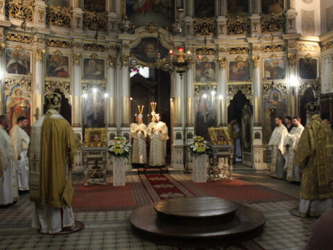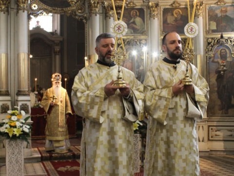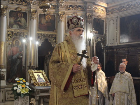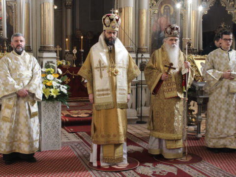 Његово Преосвештенство Епископ бачки господин др Иринеј служио је на празник Светог Николаја Мирликијског, у недељу, 6/19. децембра 2021. године, свету архијерејску Литургију у Саборном храму у Новом Саду, уз саслужење Његовог Преосвештенства Епископа мохачког господина Дамаскина, свештенства и ђаконства Епархије бачке.