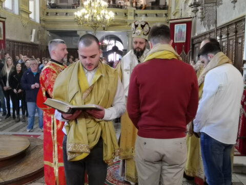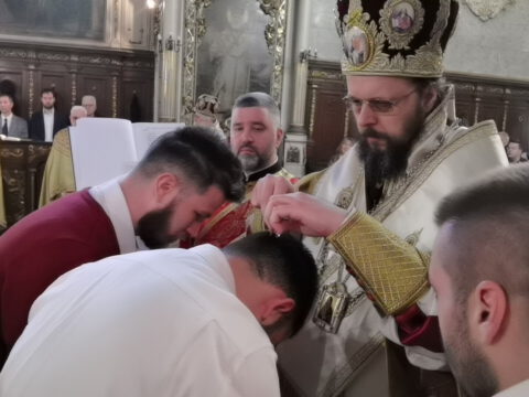 Пред почетак свете Литургије владика Дамаскин је у чин чтеца рукопроизвео Давида Бајца, Милана и Димитрија Симића, а владика Иринеј је у чин ипођакона рукопроизвео чтеца Дамјана Љујића.