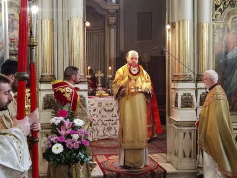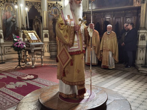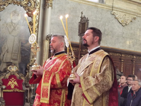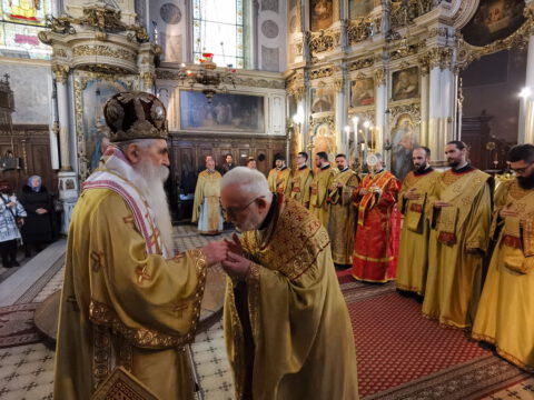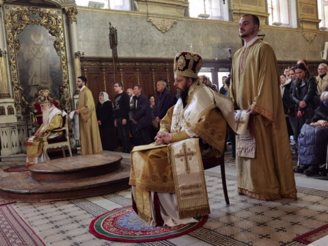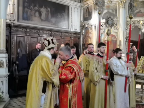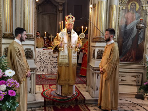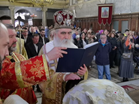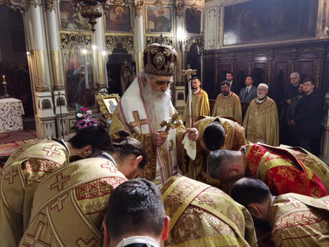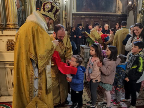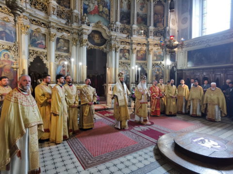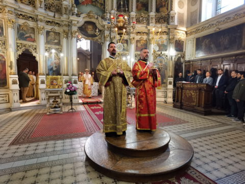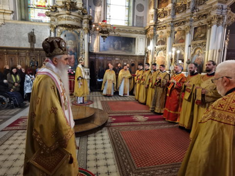 На празник Уласка Господа Исуса Христа у Јерусалим – Цвети, 4/17. априла 2022. године, на светој архијерејској Литургији у Саборном храму у Новом Саду началствовао је Његово Преосвештенство Епископ бачки господин др Иринеј. Преосвећеном епископу Иринеју саслуживали су Његово Преосвештенство Епископ мохачки господин Дамаскин, свештеници Саборног храма и новосадски ђакони.