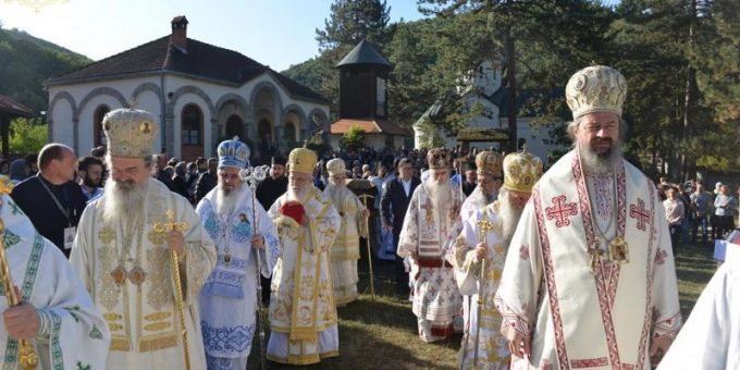 Њихова Преосвештенства епископи бачки Иринеј и мохачки Исихије саслуживали су Његовом Високопреосвештенству Митрополиту црногорско-приморском г. Амфилохију, који је началствовао светом архијерејском Литургијом која је служена након освећења наведеног храма у манастиру Ћелијама. Митрополиту су саслуживали и Архиепископ берлински и све Немачке г. Марко (Руска Загранична Црква), као и Преосвећена господа епископи: врањски Пахомије, шумадијски Јован, ваљевски Милутин, рашко-призренски Теодосије, крушевачки Давид, осечкопољски и барањски Херувим, умировљени епископи Атанасије и Јован, свештенство и монаштво више епархија Српске Православне Цркве.