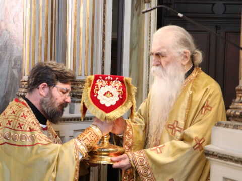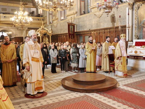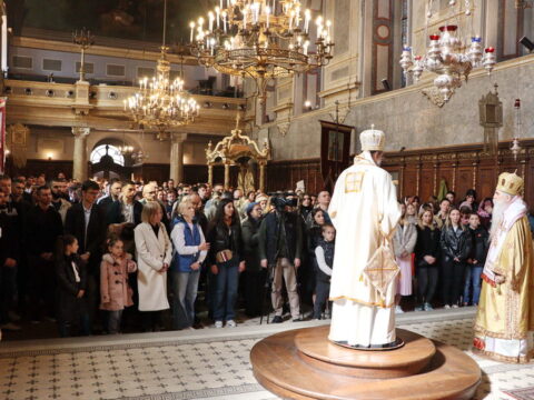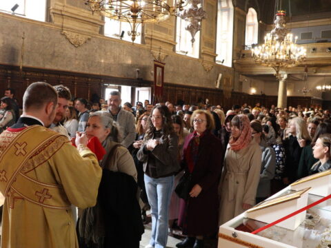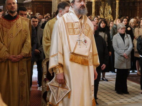 У Крстопоклону недељу, 2/15. марта 2026. године, на светој архијерејској Литургији у Саборном храму у Новом Саду началствовао је Његово Преосвештенство Епископ моравички господин Тихон, викар Патријарха српског, уз саслужење Његовог Високопреосвештенства Митрополита бачког господина др Иринеја, свештенства Саборног храма и новосадских ђакона.