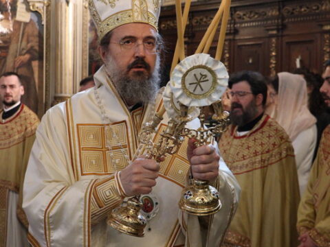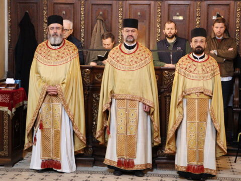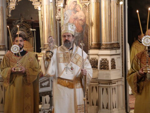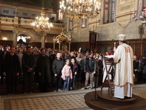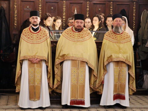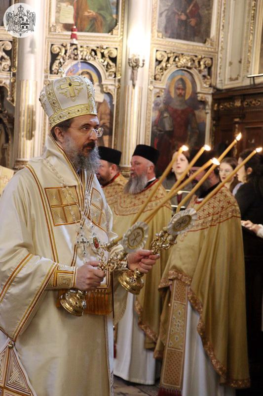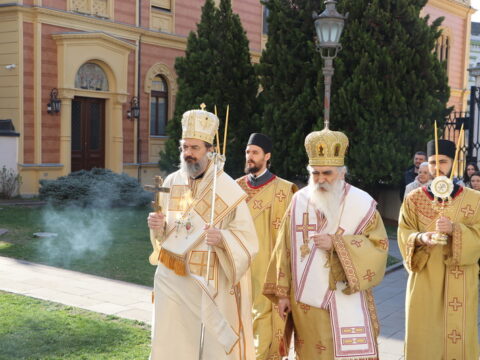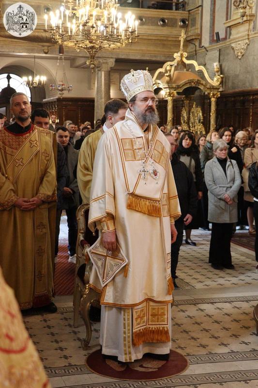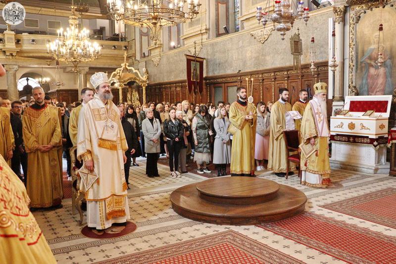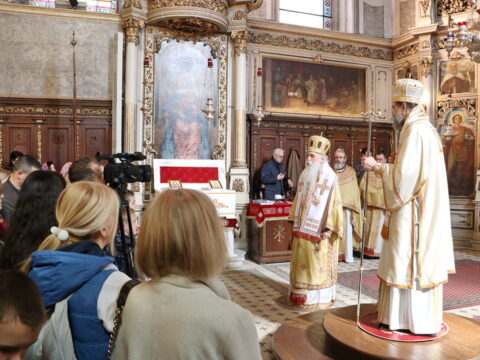 У Крстопоклону недељу, 2/15. марта 2026. године, на светој архијерејској Литургији у Саборном храму у Новом Саду началствовао је Његово Преосвештенство Епископ моравички господин Тихон, викар Патријарха српског, уз саслужење Његовог Високопреосвештенства Митрополита бачког господина др Иринеја, свештенства Саборног храма и новосадских ђакона.