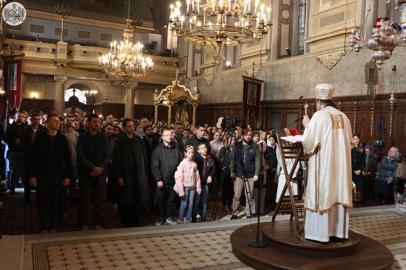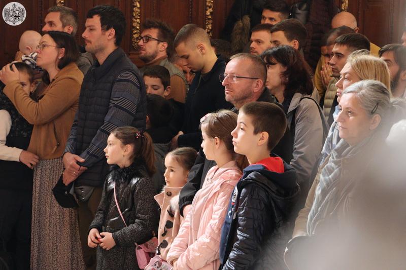 Беседећи после прочитаног јеванђелског одељка, Преосвећени Епископ моравички Тихон је сабрани верни народ поучио следећим речима: „Истина Цркве је да тело није тамница, нити је овај свет простор кажњавања. Полазиште светих Отаца увек је било да је Бог створио свет из љубави и све што је створио да је било добро. И, као што знамо, сишао је к нама и постао један од нас, примио је тело. Зато, када учимо о општем васкрсењу мртвих које чекамо, када чекамо долазак Христа Судије у слави, ми сматрамо да то васкрсење из мртвих неће бити просто повратак на старо него испуњење у коме ће свет да добије не само нов него пун квалитет и достојанство. А за тако нешто смо и створени. Нека је са срећом пост, да се поклањамо Часном Крсту и да чекамо празник васкрсења, а кроз сав свој живот да чекамо будући догађај доласка Христа Судије и Месије, Коме слава вавек.ˮ
