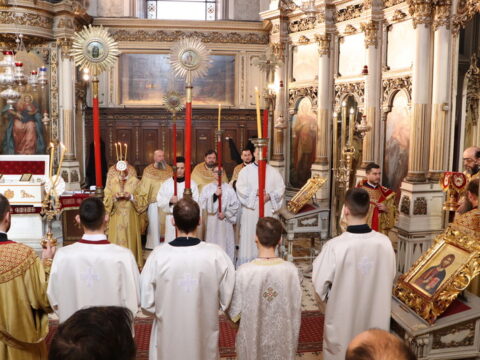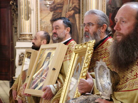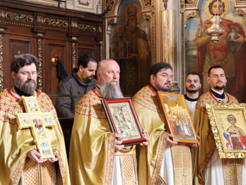 После заамвоне молитве служен је чин литије са светим иконама у Недељу Православља.