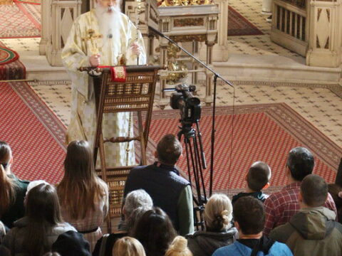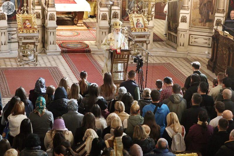 Беседећи после прочитаног јеванђелског зачала, Високопреосвећени митрополит Иринеј је, између осталог, рекао: „Седми васељенски сабор, дакле последњи Сабор који су признавали сви хришћани Истока и Запада, у осмом веку, 787. године, благословио је и озаконио заувек убудуће поштовање иконâ и оне су свечано враћене и у храмове и домове хришћана, одакле су биле силом уклањане. Међутим, и даље је постојала метеж, смутња, покушај да се то све спречи и после Седмог васељенског сабора, тако да је 842. године сазван нови Сабор, у време царице Теодоре, који је свечано извршио обнову поштовања иконâ и вратио их на њихово место и од тада, па до данас, ако Бог дâ и убудуће, оне се поштују, управо зато што се изражава вера у Оваплоћење Бога. Бог није апстрактан, само предмет наше вере која ничим не може бити аргументована или, на неки начин, на нечем утемељена, него је наша вера, поред осталога, и историјски утемељена на сусрету са Оваплоћеним Логосом Божјим, са Господом Христом, који су имали свети апостоли, а и сви свети кроз векове се удостојавају виђења, боговиђења као виђења Христа Господа. И зато то није питање неког теолошког ситничарења, или нека ситница, него је питање саме суштине наше вере. Вера у Свету Тројицу, као Једнога Бога, и вера у Оваплоћење Једнога од Свете Тројице, тојест у историјски карактер Личности Богочовека Христа, јесу темељне истине наше свете вере.ˮ